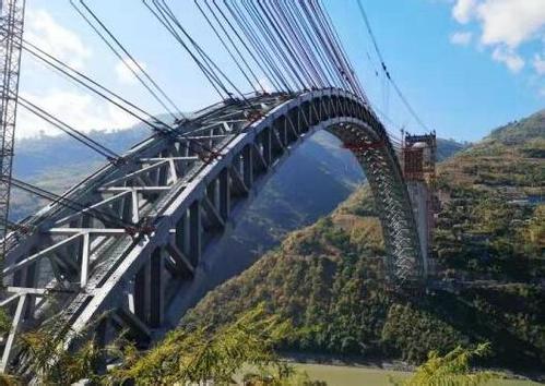 12月10日,我國(guó)怒江四線特大橋鋼桁拱順利合龍,這是云南大理至瑞麗鐵路全線重點(diǎn)控制性工程。大橋的合攏,標(biāo)志著我國(guó)“一帶一路”中緬鐵路通道的建設(shè)取得了重大進(jìn)展。大橋主跨為單跨490米的鋼桁拱,一跨飛越怒江天塹,是目前世界上鐵路拱橋的最大跨度。