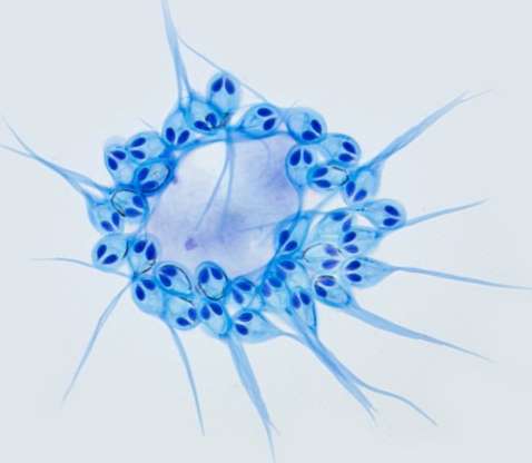以色列特拉維夫大學(xué)的一個研究小組在研究一種常見的鮭魚寄生蟲時發(fā)現(xiàn),這種寄生蟲名叫Henneguya salminicola,是一種與珊瑚、水母和海葵同屬一個動物門的食肉動物。雖然鮭魚體內(nèi)寄生蟲形成的囊腫很難看,但它們對鮭魚無害,并與鮭魚的生命周期共存。